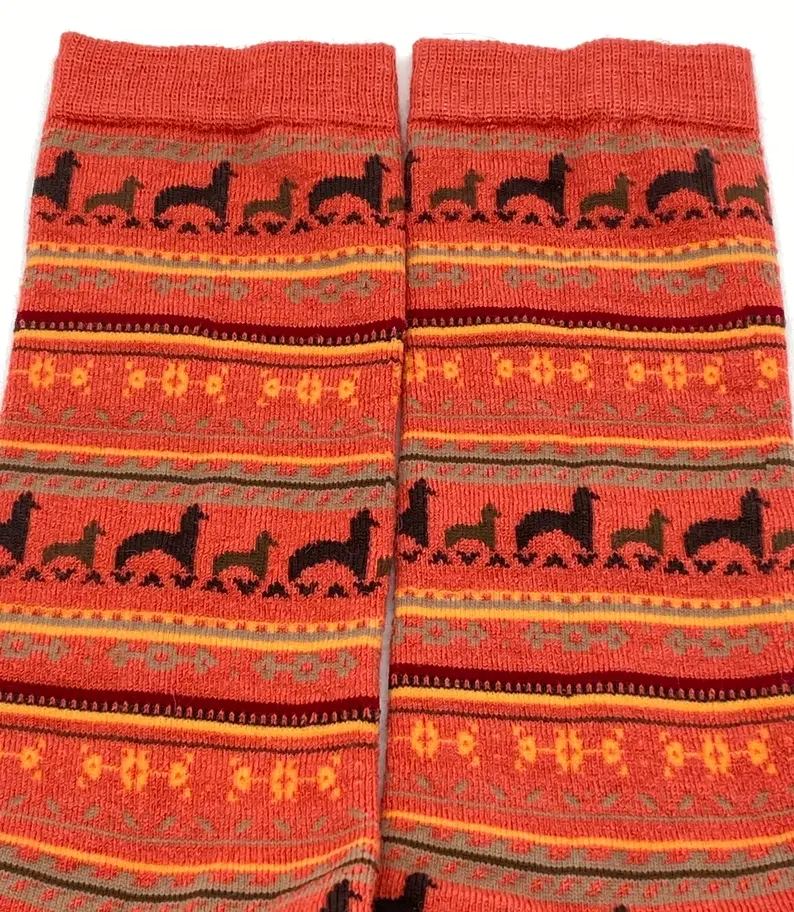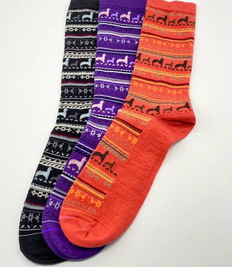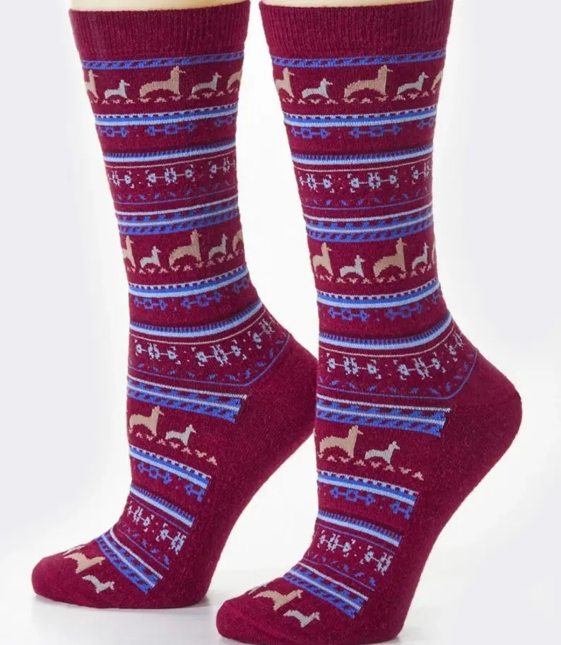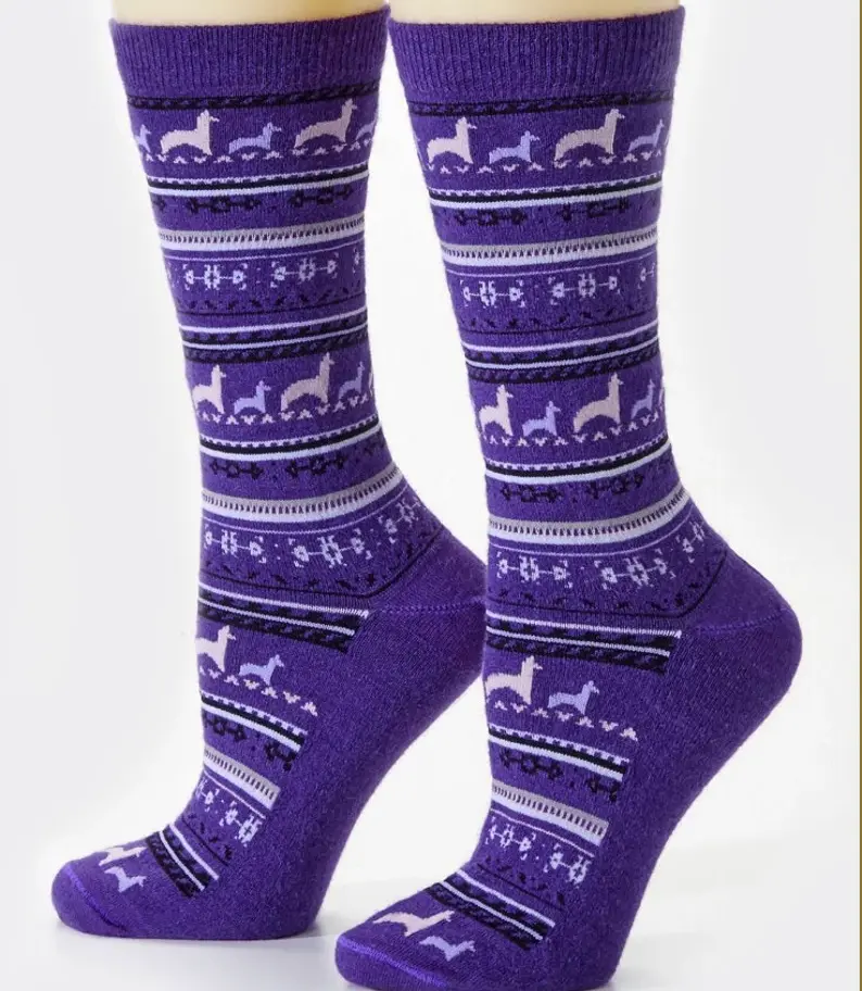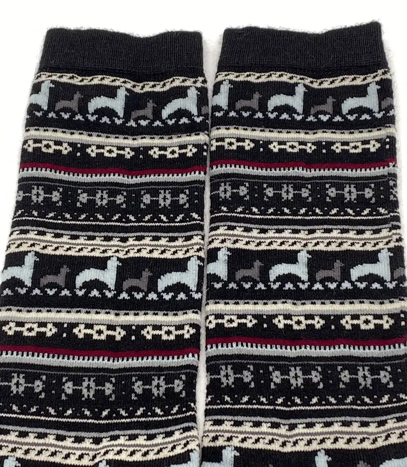 These fun alpaca print socks are made from a blend of 70% Baby Alpaca, 25% Nylon and 5% Spandex. Baby Alpaca is well known for being softer then adult alpacas and that puts their fiber in high demand. So here’s your chance to get affordable, top quality, baby alpaca socks! These socks are thin like you would expect a typical dress sock to be. But that doesn’t prevent them from keeping your feet warm and comfortable.