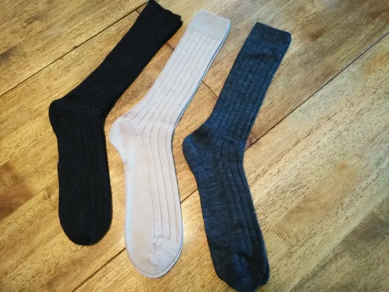 These are a great everyday sock!. They are the perfect thickness to wear in both the summer sneaker and the winter boot. This is due to Alpaca Fiber having a hollow insulating core that provides great warmth along with a mositure wicking technique that helps the material breathe better keeping your feet from becoming sweaty. Alpaca adds an extra amount of softness in these socks that you are sure to love. These Wide Ribbed socks are very attractive looking with the long ribbed design from heel to toe. Another amazing sock!