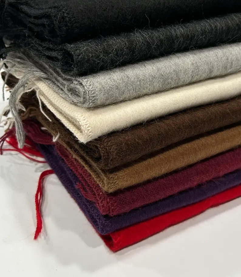 Hypoallergenic and lanolin-free, these solid color scarves do not irritate the skin like other wool made items. Adding an Alpaca scarf to your outfit really does attract the eyes of people nearby and sparks their curiosity of wanting to know where your scarf came from since the elevated quality can be seen by anyone